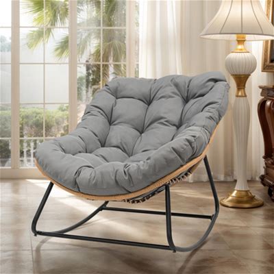 Outdoor Papasan Rocking Chair, Patio Chair Indoor Egg Royal Rattan Rocking Chair With Cushion - 33" W X 16.1" D X 29.9" H Metal In Grey