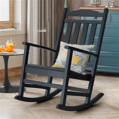 Outdoor Adirondack Rocking Chair, All-Weather Patio Rocking Chairs, HDPE Plastic Outdoor Rocking Chairs With Wide Back Polypropylene In Black, Size 1