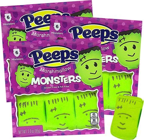 Needzo Halloween Monster Peeps Marshmallow Candy, Party Favors Or Baking Decoration DIY, Festive Candy (Pack Of 3)