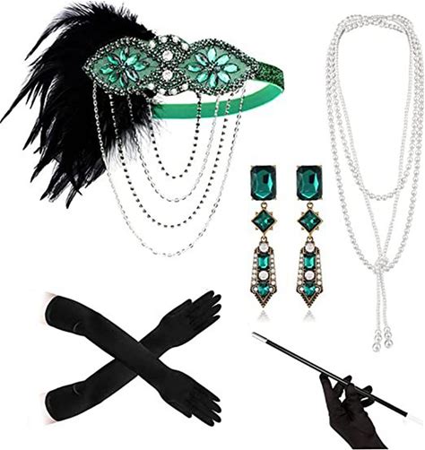 Vintage 1920S The Great Gatsby Flapper Headband Accessories Set Charleston Wedding Guest Feather Fancy Dress Women's Wedding Reception Bachelorette Party Festival Adults' Gloves
