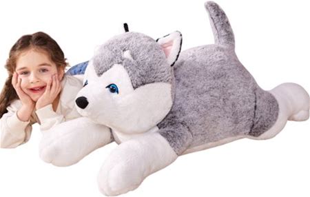 Ikasa Giant Husky Stuffed Animal Plush Toy,Large Jumbo Husky 30" Gray Huge Cute Soft Toys,Big Size Fluffy Plushy Fat Oversized Plushie,Gifts For Kids