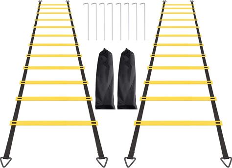 12 Rungs Agility Ladder Set, Training Ladder With Steel Stakes And Carry Bag For Soccer, Speed Fitness Feet Training