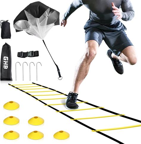 GHB Agility Ladder Speed Training Ladder Workout Ladder With 6 Or 10 Cones 12 Rung 20ft With Resistance Parachute