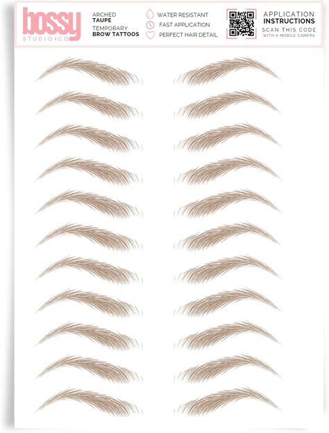 Brows By Bossy Studio & Co Temporary Eyebrow Tattoos Waterproof Eyebrow Stickers, False Tattoos Hair Like Peel Off Instant Transfer Brow Arched Taupe
