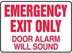 Emergency Exit Only Door Alarm Will Sound Safety Sign