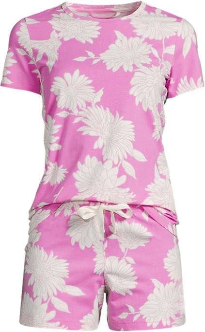 Women's Knit Pajama Short Set Short Sleeve T-Shirt And Shorts - Lands' End - Pink - M