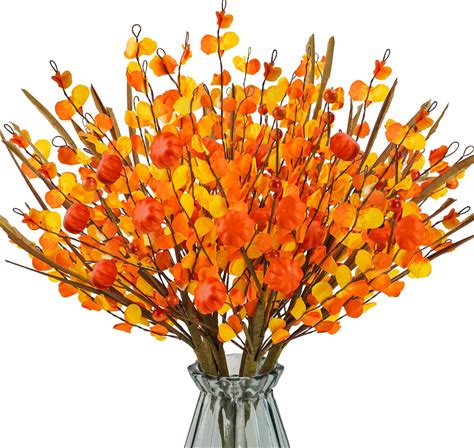 Artificial Farmhouse Fall Thanksgiving Floral Arrangement For Vase Filler, Mini Eucalyptus Faux Flower Branch Twig With Long Stem For Home Wedding Party Dining Table Centerpiece Decor Flower Color: Purple