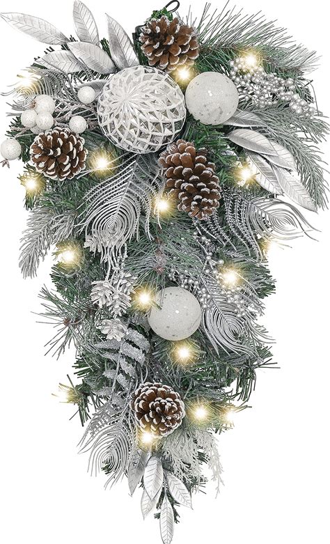 35.4 Inch Prelit Mailbox Christmas Swag with 20 White LED Lights M