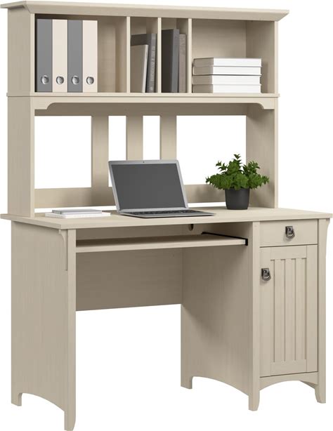 Bush Home Salinas Small Computer Desk With Hutch In Antique White
