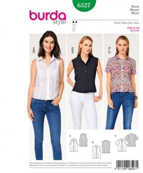 Burda Ladies Easy Sewing Pattern 6527 Stand Collar Blouse Tops