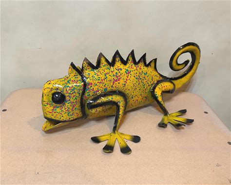 Handpainted Mini Metal Chameleon Lizard Gecko | Yard Art Garden Decor | Artisan Made Landscape Sculpture | Lawn Ornament