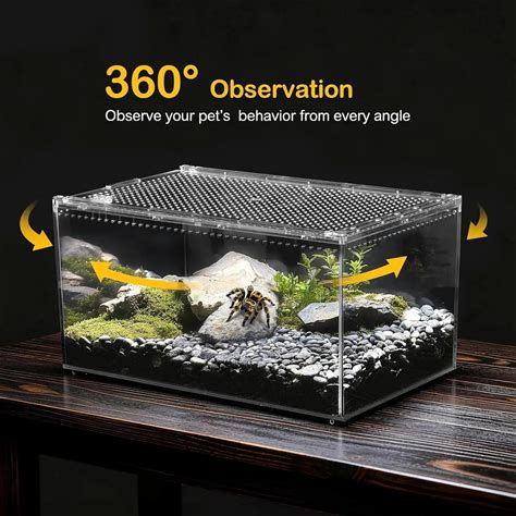 13 Gal Detachable And Oldable Reptile Cage Terrarium, 360° Observation, Airlow, Interaction In Gecko