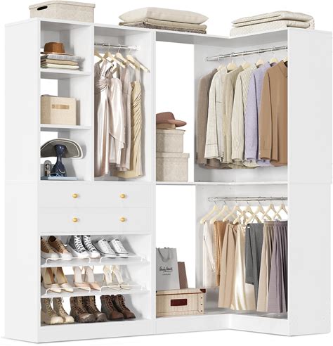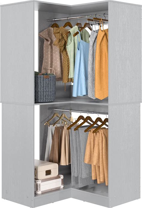 Double Hanging Closet Unit - Modular Corner Closet System - White, 21 Inches Wide - Includes Shelves