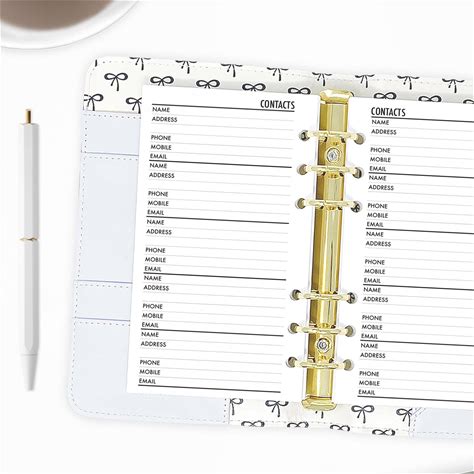 Personal Contacts Planner Insert, Address Book Refill