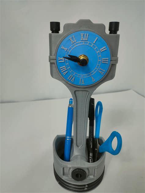 3D-Printed Piston Clock And Pen Holder - Mechanical Design For Car Lovers & Engineers - Dual Function Desk Decor