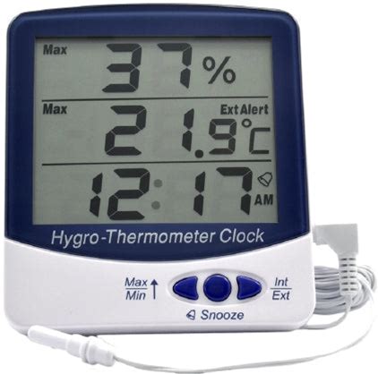 Digital Thermometer/Hygrometer Alarm Fahrenheit/Celsius -58° To +158°F (-50° To +70°C) External Probe Internal Sensor/Extrernal Probe Flip-Out
