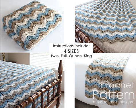 Afghan Blanket Crochet PATTERN, Easy Bed Topper Throw, Chevron Stripes Seaside Design, Multiple Sizes, Instant Download, Printable PDF-6080