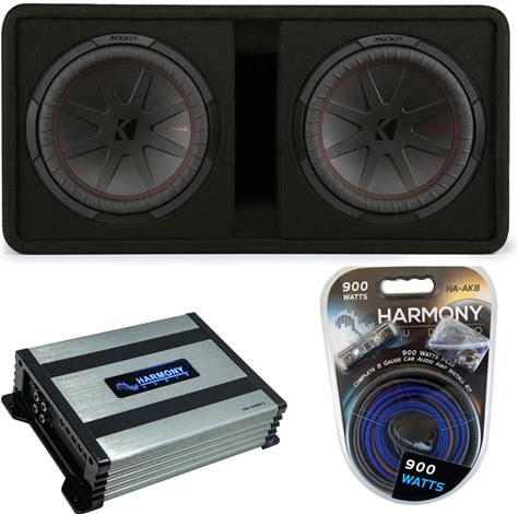 Kicker 48DCWR122 Dual 12" Compr Series Sub 1000W RMS Loaded Subwoofer Box Bundle With Harmony HA-A800.1 Amplifier & Amp Kit