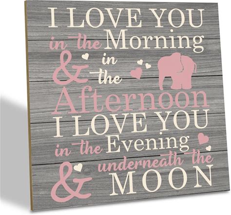 Love Sign, Wood Plaque Table Art Sign 6.2 6.2Inch, Elephant Wood Sign For Nursery, Decoration For Baby Girls Room, Daughter's Room Decor, I Love You