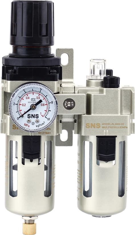 SNS 1/4" NPT Compressed Air Filter Regulator Lubricator Two Units Combo FRL Water/Oil Trap Separator, Semi-Auto Drain, Gauge And Bracket, Poly Bowl