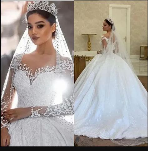Customize Dubai Princess Gorgeous Ball Gown Bride Wedding Dresses Long Sleeves Lace Appliques Beaded