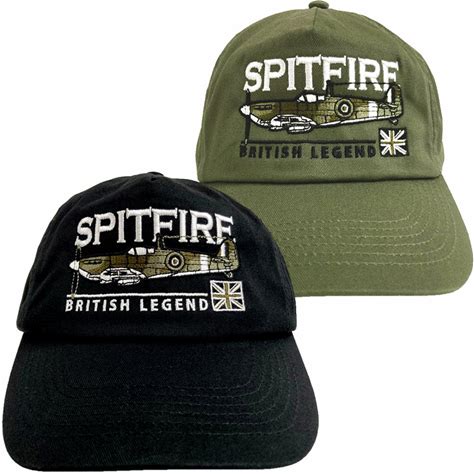 Supermarine Spitfire WW 2 Battle Of Britain Fighter Aircraft Black Or Green Embroidered Adjustable Baseball Cap