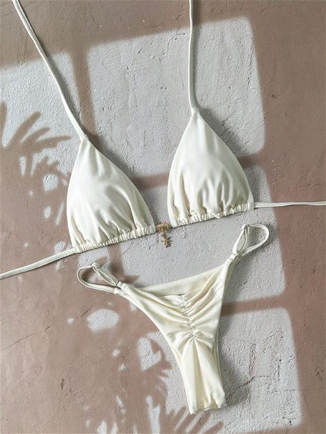 2026 Spring/Summer Spaghetti Strap Brown & Green Resin Bead Design High Cut Sides Thong Bikini 2 Pieces Swimwear For Women Boho Bikini Set Brown Bathing Suit Women Thong Bikini Set For Women Brown Bikini Set String Bikini Set