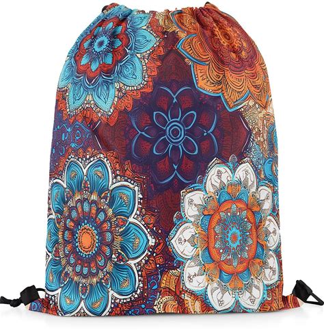 Erosebridal Mexican Otomi Drawstring Bags,Bohemian Colorful Mandala Draw String Back Bag,Southwestern Retro Flower Floral Drawstring Backpack,Boho