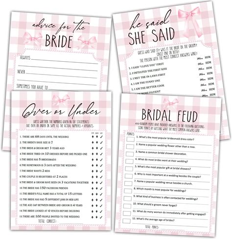 Blush Pink Bow Bridal Shower Game Cards, Over Or Under, He Said She Said, Bridal Feud Games, Wedding Bridal Shower Supplies, 50 Double Sided Game