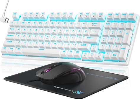 Mechanical Gaming Keyboard And Mouse, 98 Keys LED Backlit Keyboard With Floating Keycap, Ergonomic RGB Gaming Mouse With Mouse Pad Combo, Full