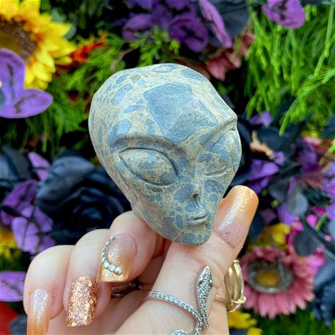 Alien Crystal Skull Carving - Rose Quartz And Other Natural Healing Stones - Unique Spiritual Figurine - Meditation Tool - Healing Sounds