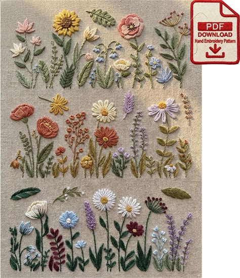 Wildflower Meadow Floral Line Art Embroidery Pattern PDF