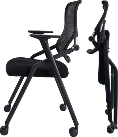 FYLICA Stackable & Foldable Office Chair, Folding Desk Chair With Flip-Up Armrest, Breathable Mesh, Thick Seat Cushion & Rocking Backrest, Conference