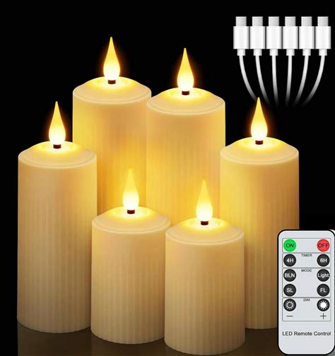 Pack Of 6 USB Rechargeable Remote Controlled Led Candle Set Flickering Flameless Roman Pillar Candle
