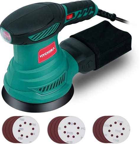 HYCHIKA 5-Inch Random Orbital Sander, 13000RPM Electric Palm Sander With 6 Variable Speeds, Powerful Motor, 12PCS Sandpapers And Efficient Dust