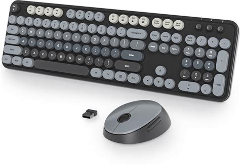 Fogruaden Black Keyboard And Mouse Wireless, Retro Typewriter Keyboard, 2.4Ghz 104 Keys Full Size Cute Keyboard With Number Pad, Gradient Colorful