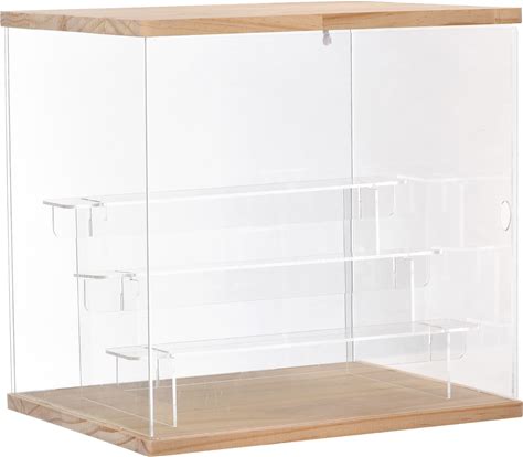 LASOA Acrylic Display Case For Collectibles With LED Light, Alternative Glass Display Box With Black Base And Lid, Self-Assembly Clear Storage
