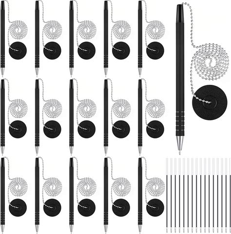 Outus 32 Pieces Security Pen Set With Bead Chain And Pen Holder, Desktop Pens With Chains, Blank Ink Refills For Office Bank Supplies, Black