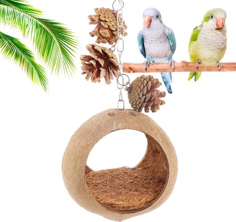 Kathson Natural Coconut Shell Bird Nest,Hanging Coconut For Birds Parakeet Coconut Hut Coco Shell Bird House Cage Accessories Decoration For Parrots