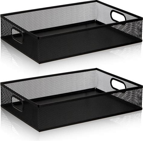 Elsjoy 2 Pack Desk Drawer Organizer Tray, Metal Mesh Desktop Storage Tray Office File Organizer With Handle, Portable Large Storage Basket For Office