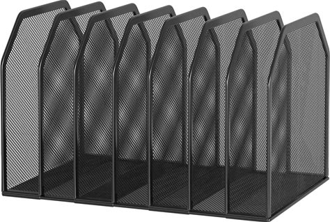 1Intheoffice Desktop File Organizer Vertical, Mail Organizer, 7 Compartments Office File Sorter, 4-3/4" H X 8-3/4" W X 5-1/2" D, Plastic, Black 2 Pack