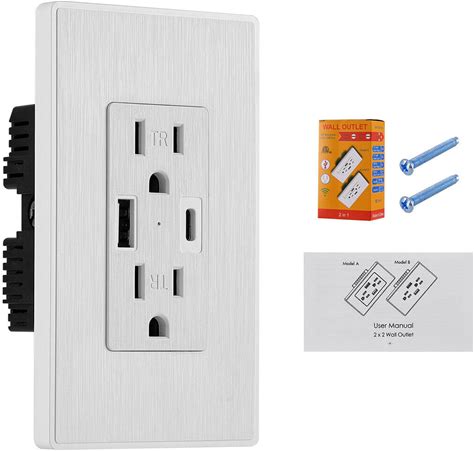 USB C Charger Wall Outlet Socket AC Power Receptacle Plate Panel 15A 110V-250V. Otelesales. White. Electrical Outlets & Receptacles.