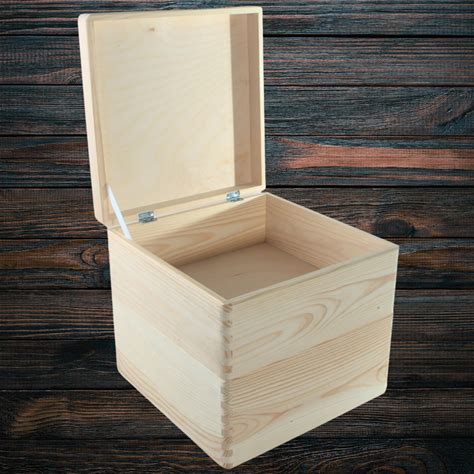 Cube Deep Wooden Storage Box With Cut-Out Handles & Wheels | Square Toy Box Crate Chest Trunk Container | Decorative Paintable Blank Pine