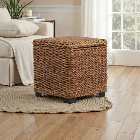 Woven Banana Leaf Cube Storage Trunk With Lift-Top Lid - Brown