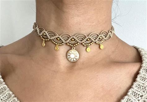 购买 micro macrame collar necklace
