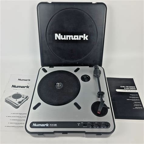 Numark PT01USB Portable USB Turntable Record Player Tested- With A Power Adapter. Numark. Black Silver. Record Players/Home Turntables.