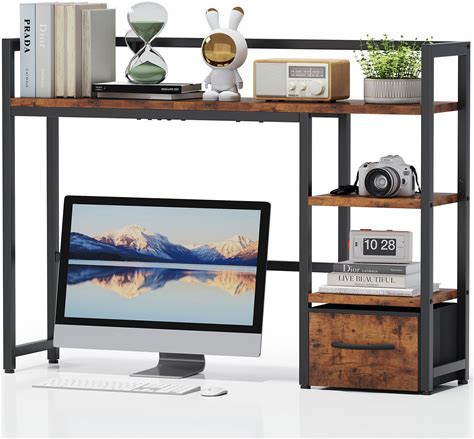 Marbrasse Desk Shelf With Drawer, 40" Desk Hutch For Computer Monitor, Wooden Desktop Bookshelf Storage Rack For Home Office Dorm - Dark Brown