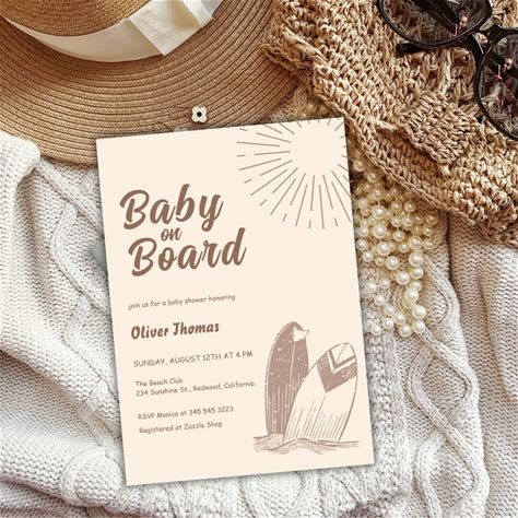 All In One Baby On Board Surfboard Beach Shower Invitation