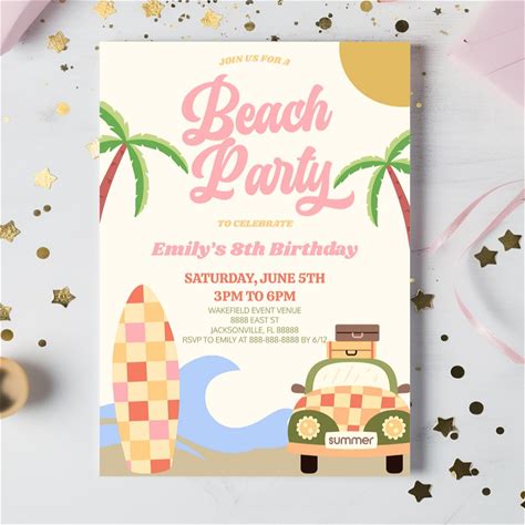 Surf's Up Surfboard Beach Birthday Invitation