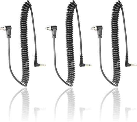 Foto&Tech 3.5 mm To Male Flash PC Sync Cable, 14 Inch Coiled Cord With Screw Lock, Compatible With Nikon Canon And Most DSLR Cameras Pocketwizard Plus